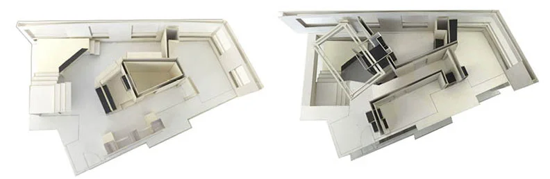 There are four people within the family, parents, child and grandma. All of them are musicians; therefore practice rooms are need. Sometime, parents hold musical events, which bring in numbers of guest. Grandma needs personal privacy from parents’ life. Hence, certain distance should lays between their rooms. Also due to lack of space, preforming stage and residential space need be exchangeable.