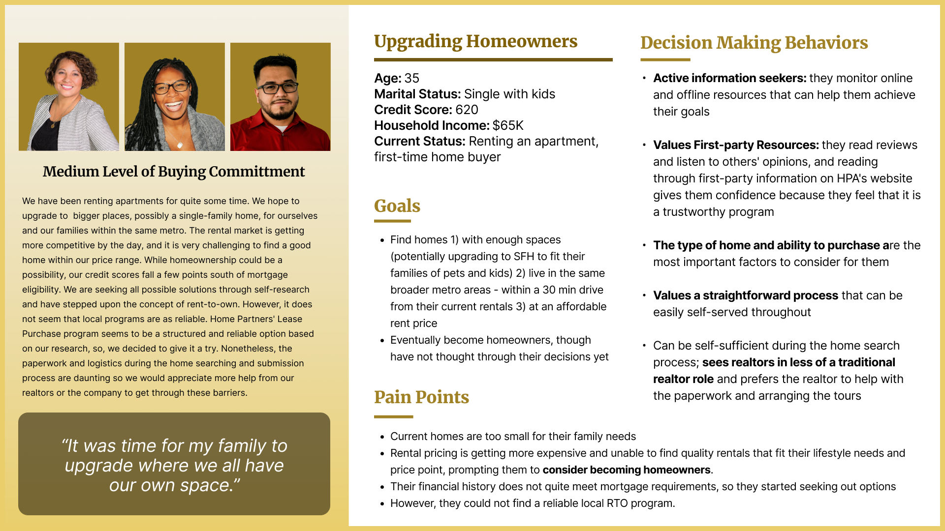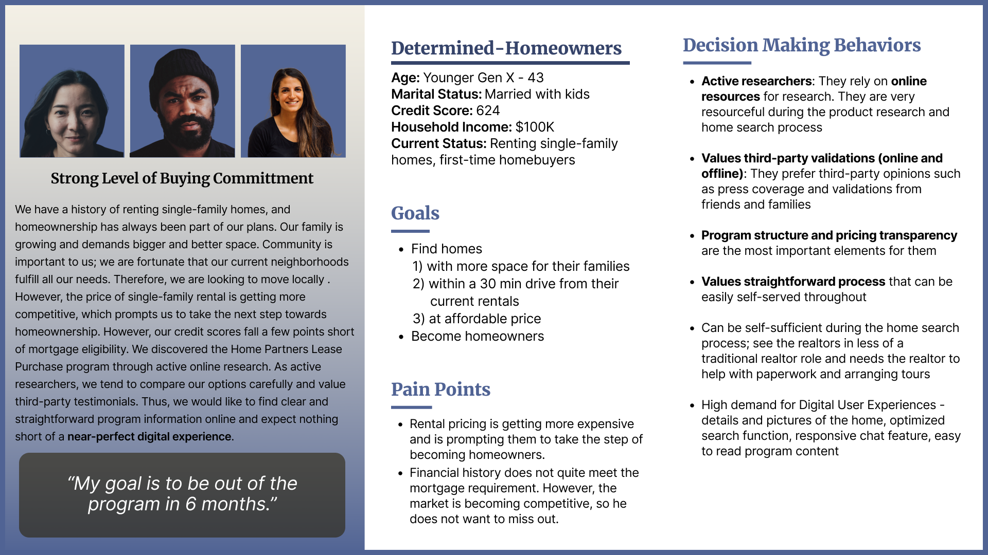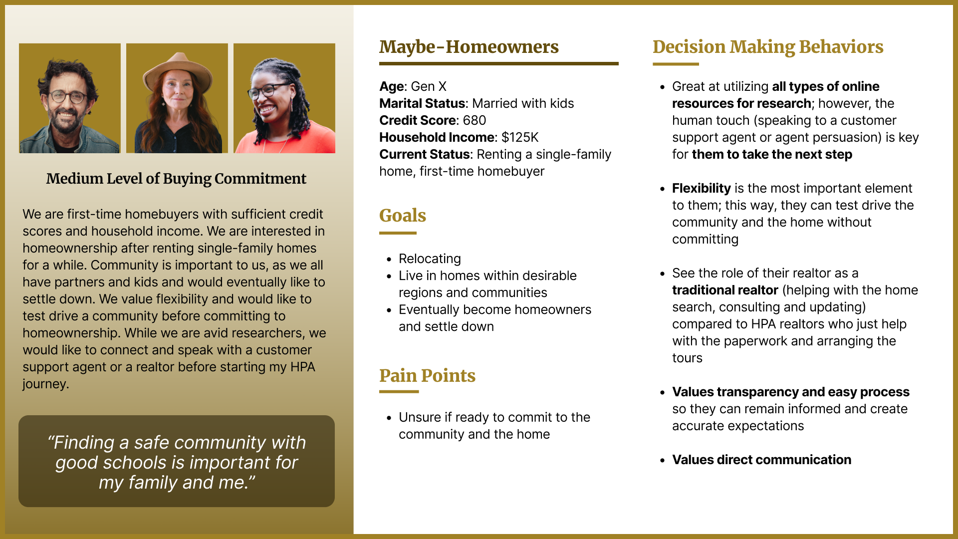 I collaborated with marketing and operations to create resident personas that would guide outreach and leasing strategy.